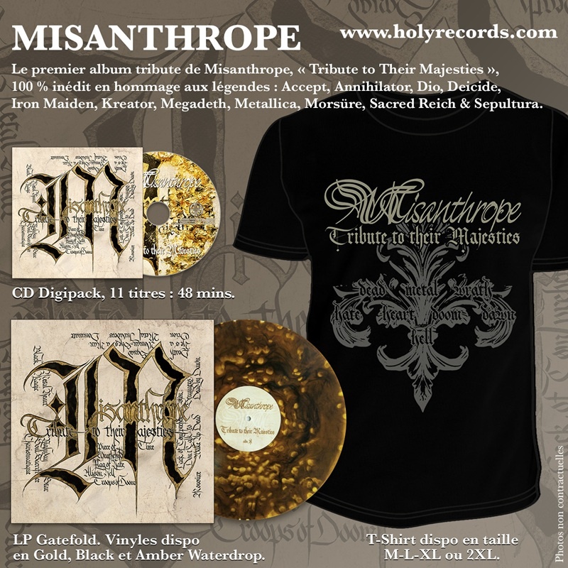 MISANTHROPE Les 7 Derniers Exemplaires !!! – BUNDLE « Tribute to their Majesties » LP Amber Waterdrop + 1 T-Shirt + 1 CD Digipack + Digital Bonus